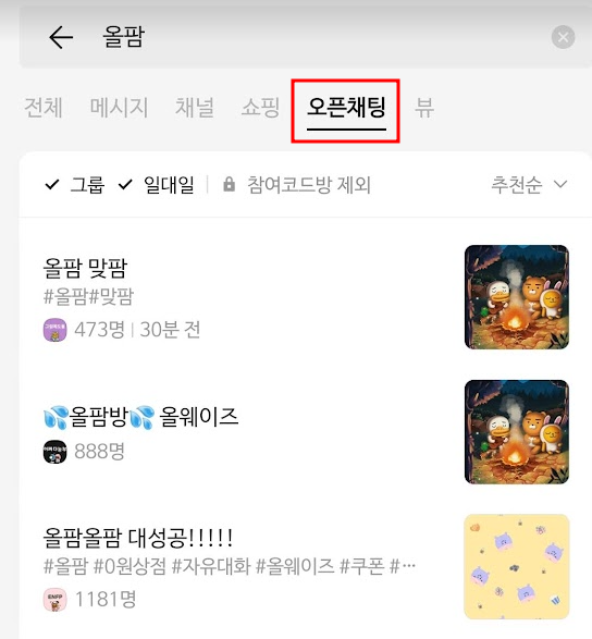 이것도 오픈채팅에서 친구들을 찾으면 돼요!